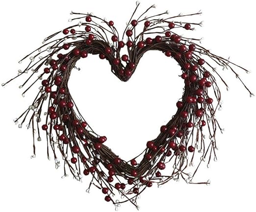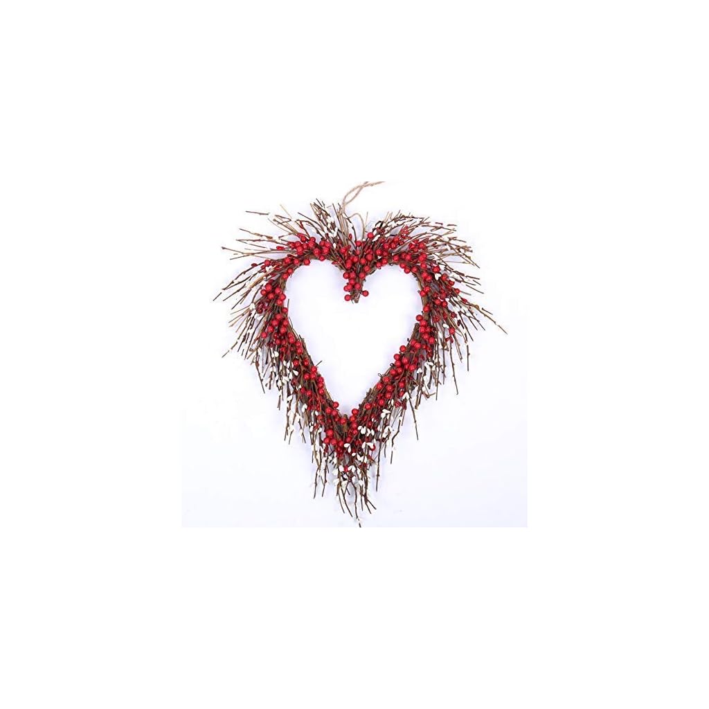 Amazon Com Idyllic Heart Wreath Handmade Red Berry Heart Shaped Wreath Rustic Twig For Door Decorative Classic Indoor Decor 18 Inches Valentine S Wreath Home Kitchen