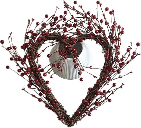 Amazon Com Decor Wreath Simulated Berry Heart Shaped Garland Rattan Wreath Wall Door Hanging Decor Valentine S Day Wedding Decoration 40cm Home Kitchen