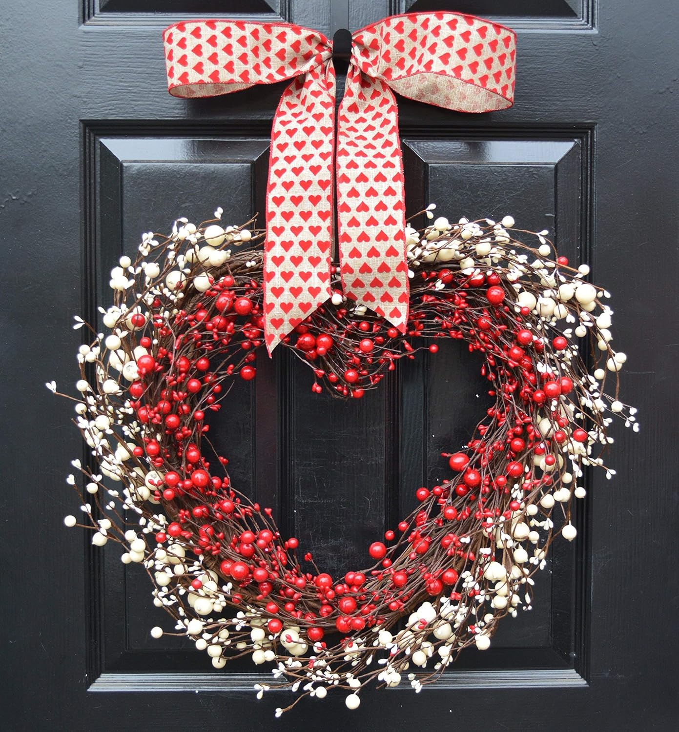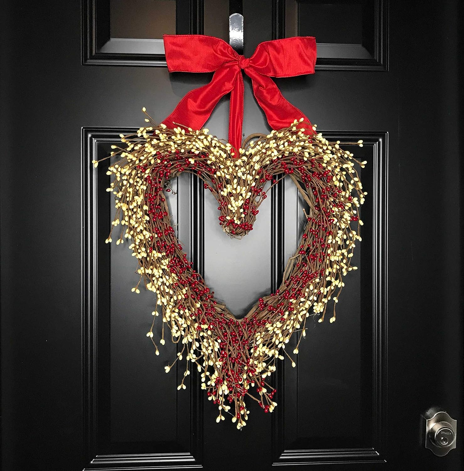 Amazon Com Rustic Heart Shaped Red Cream Berry Wreath For Valentines Day Front Door Wedding Newlywed Mother S Day Gift Front Porch Handmade 20 X 18 Handmade