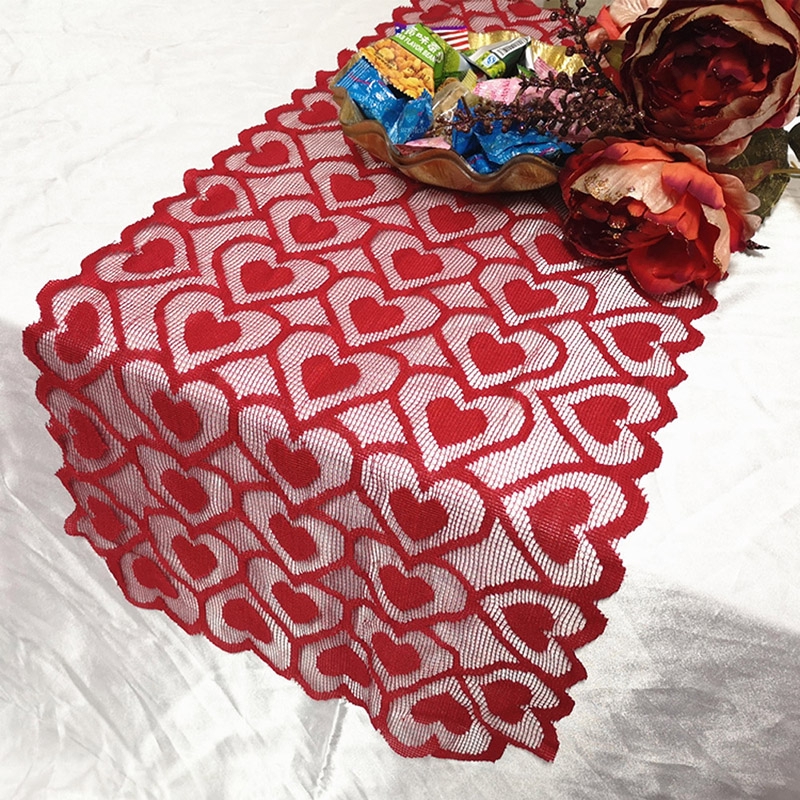 New 33x183cm Heart Pattern Lace Table Runners Valentines Day Red