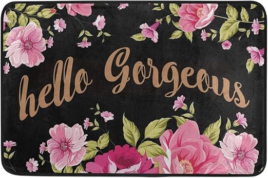 Goiifly Entrance Doormat Hello Gorgeous Flower Pink Indoor Outdoor