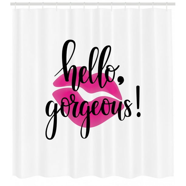 Hello Gorgeous Shower Curtain Modern Motivational Saying With Lipstick Symbol For Ladies Girls Fabric Bathroom Set With Hooks 69w X 70l Inches Black White And Pink By Ambesonne Walmart Com Walmart Com