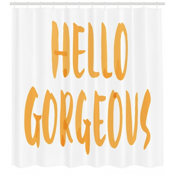 Hello Gorgeous Shower Curtain Artistic Brush Lettering Hello Gorgeous Quote On White Background Fabric Bathroom Set With Hooks 69w X 75l Inches Long White And Apricot By Ambesonne Walmart Com Walmart Com