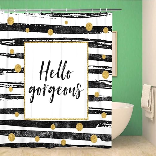 Amazon Com Awowee Bathroom Shower Curtain Gold Hello Gorgeous Motivational Quote Dots And Black Paint 72x72 Inches Waterproof Bath Curtain Set With Hooks Home Kitchen