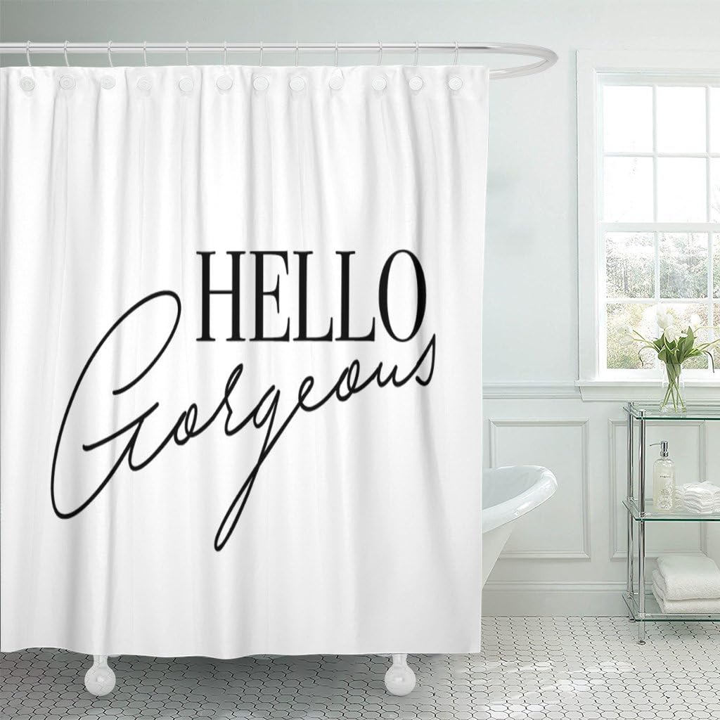 Amazon Com Emvency Shower Curtain Cute Hello Gorgeous Handwriting In Black Slogan Graphic Waterproof Polyester Fabric 60 X 72 Inches Set With Hooks Home Kitchen