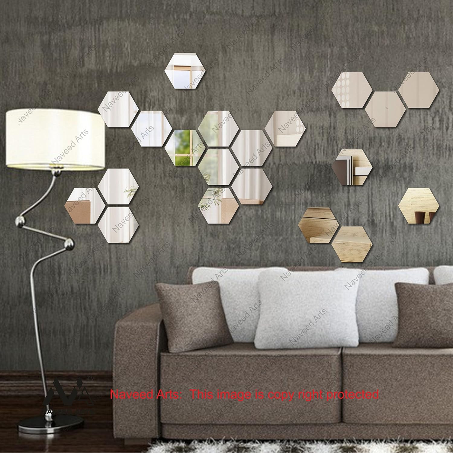 Buy Naveed Arts Acrylic Hexagon Wall Decor 20 Silver Mirror