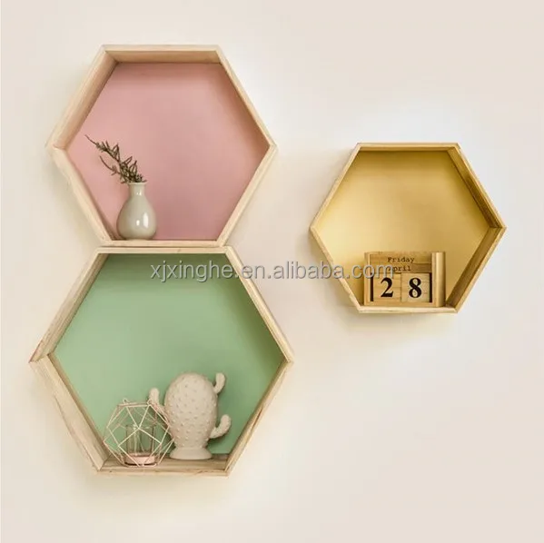 New Wood Hexagon Wall Decoration Baby Room Bedroom Candy