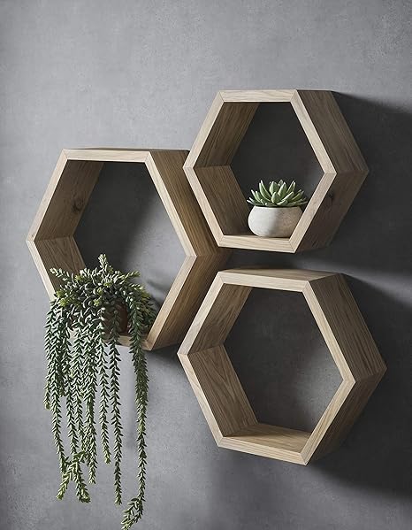 Set Of 3 Hexagon Honeycomb Wood Floating Shelves Eko Deko