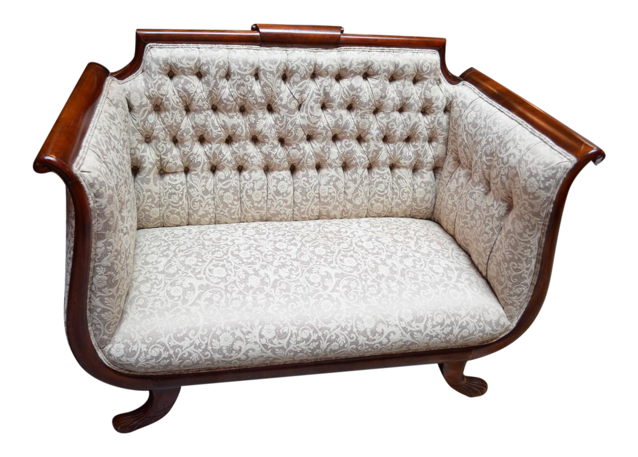 Antique American Empire Style Tufted High Back Deep Seated Settee