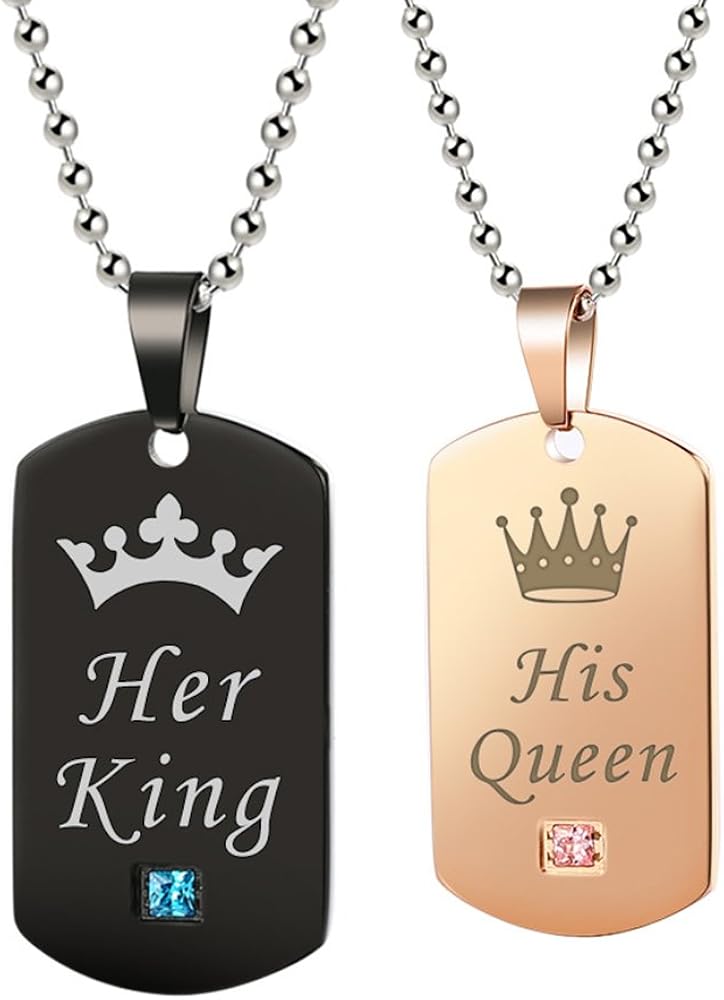 Vova His Queen Her King Couple Necklace His Hers Stainless Steel