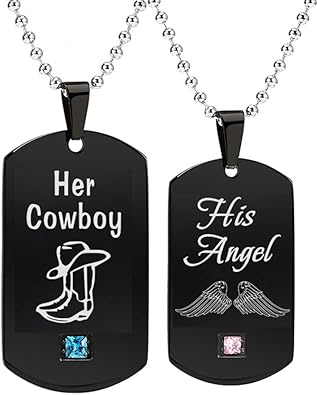 Gagafeel Couples Necklace His Angle Her Cowboy Cz Pendant Dog Tag