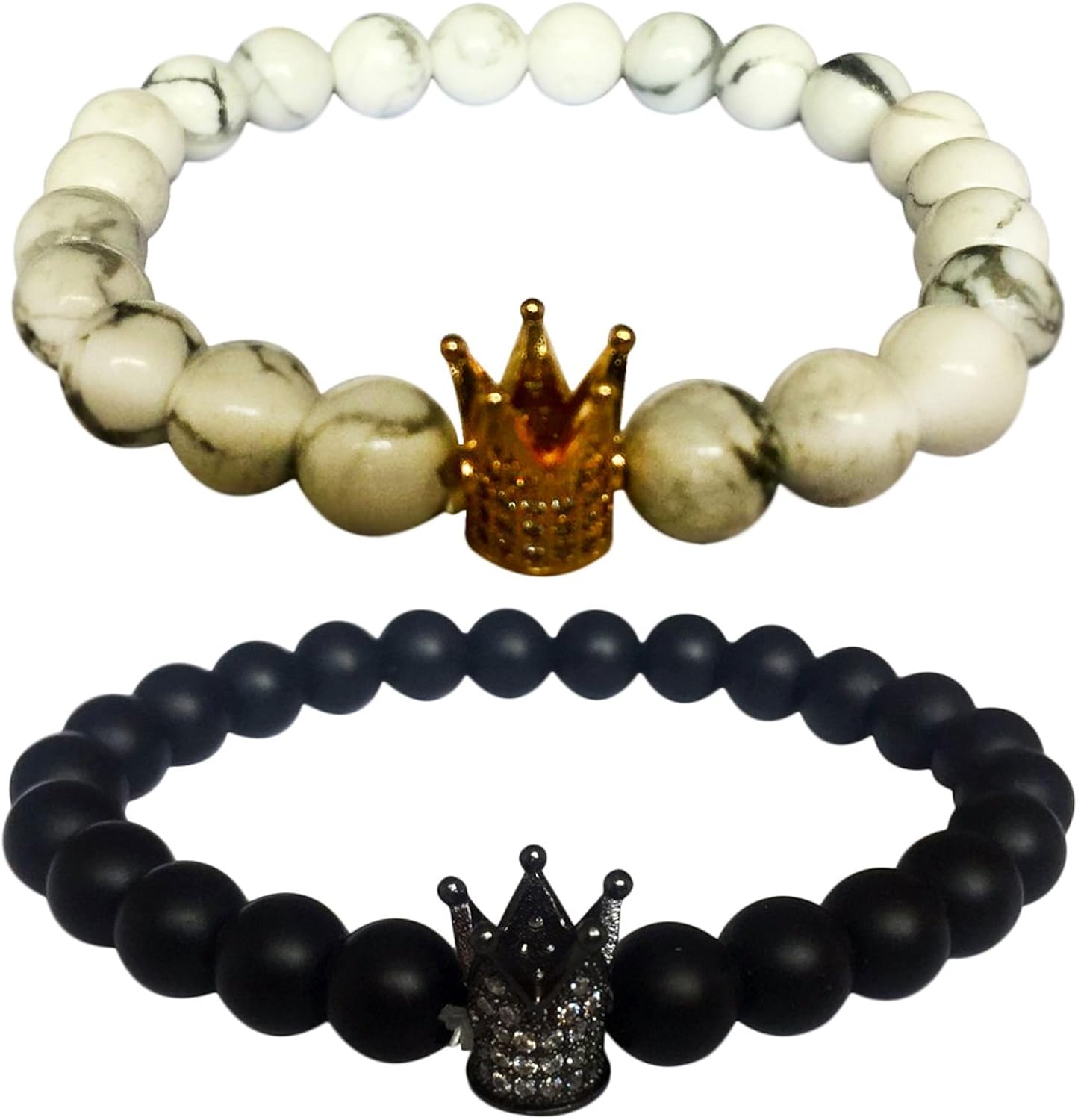 2x Love Couple Jewelry King Queen His Hers Crown Marble Bracelet