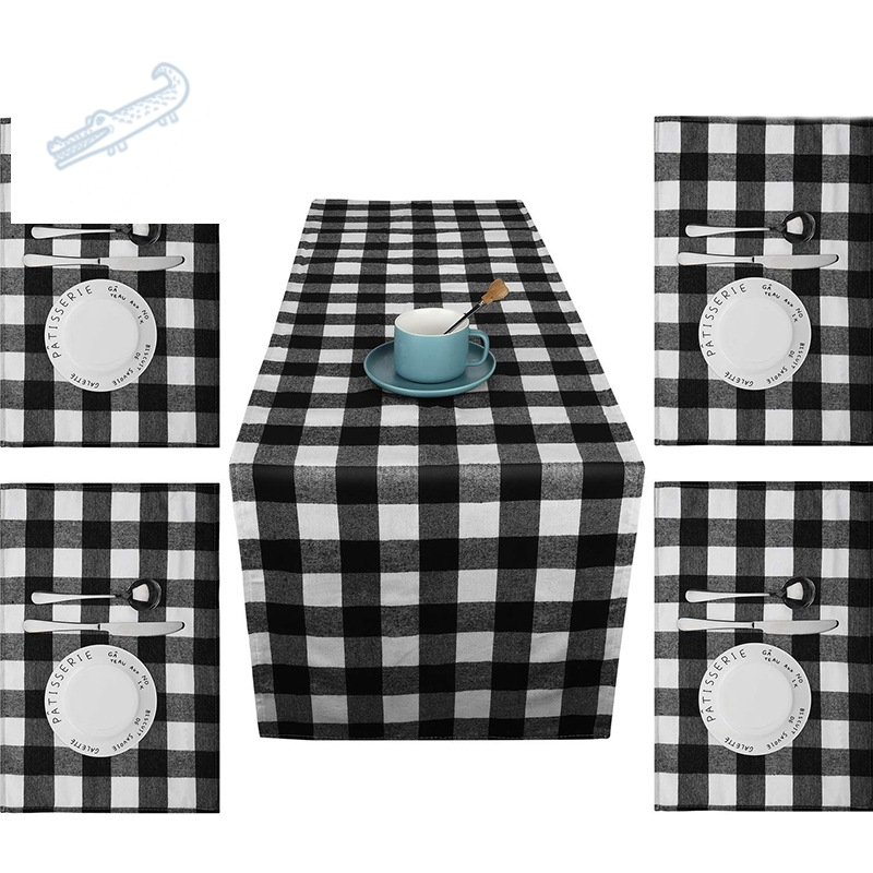 Christmas Plaid Table Runner Cotton Table Linens And 6 Pieces