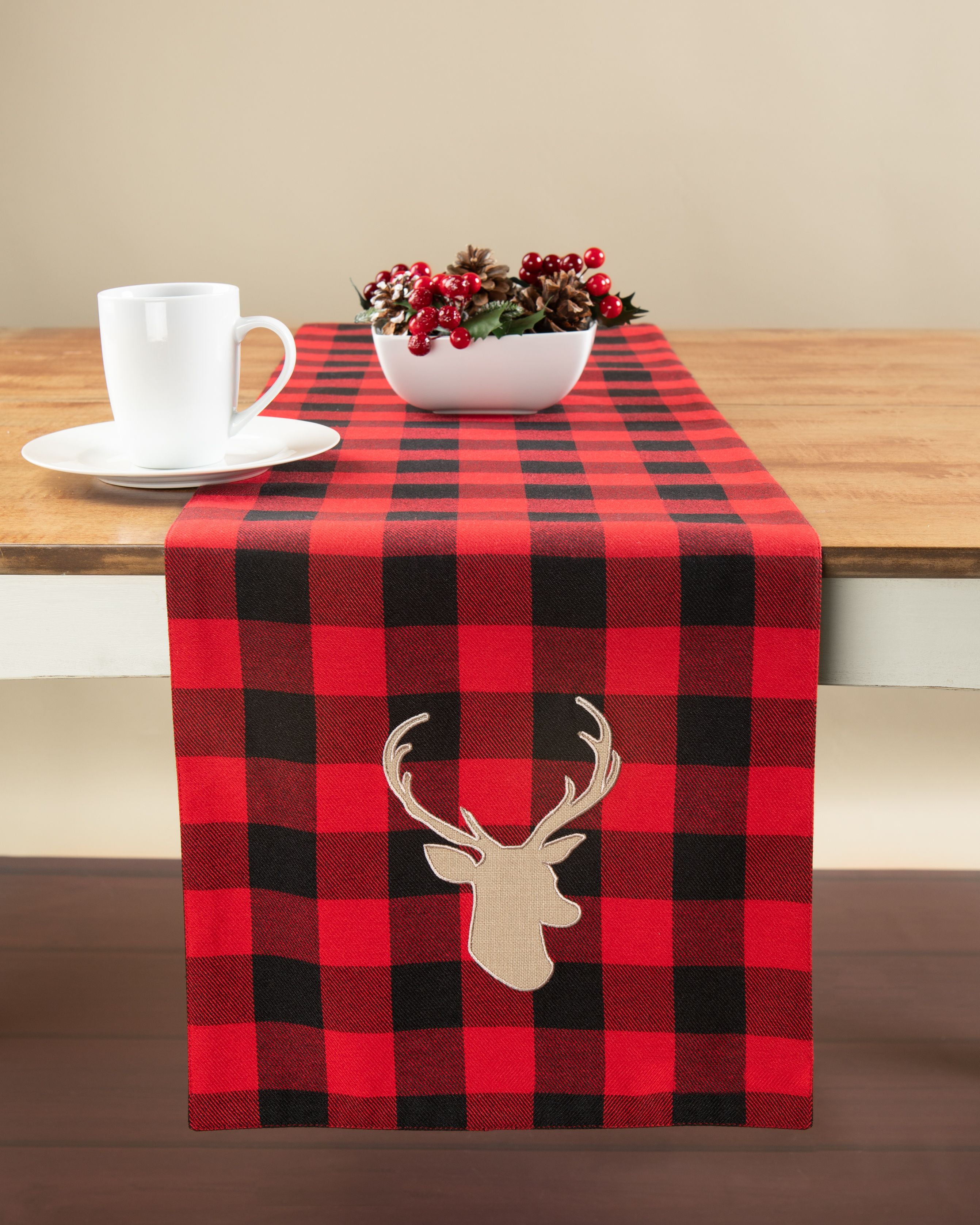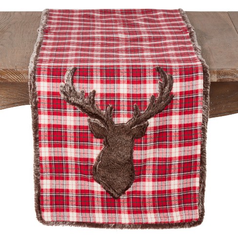72 X16 Holiday Plaid Reindeer Poly Blend Table Runner Red