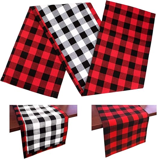Gohope Christmas Table Runner Red Black Cotton Buffalo Check Plaid
