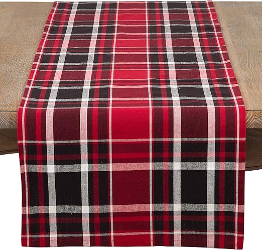 Lintex Comfy Cottage Christmas Plaid Cotton Fabric Table Runner