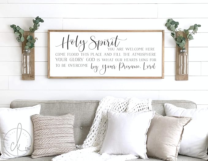 Holy Spirit You Are Welcome Here Farmhouse Sign Distressed Sign Rustic Scripture Sign Framed Wood Sign Distressed Wood Sign Wood Sign Wood Frame Sign Scripture Signs Distressed Wood Signs