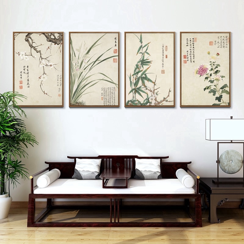 Vintage Art Chinese Style Meilan Bamboo And Letters Poster Print