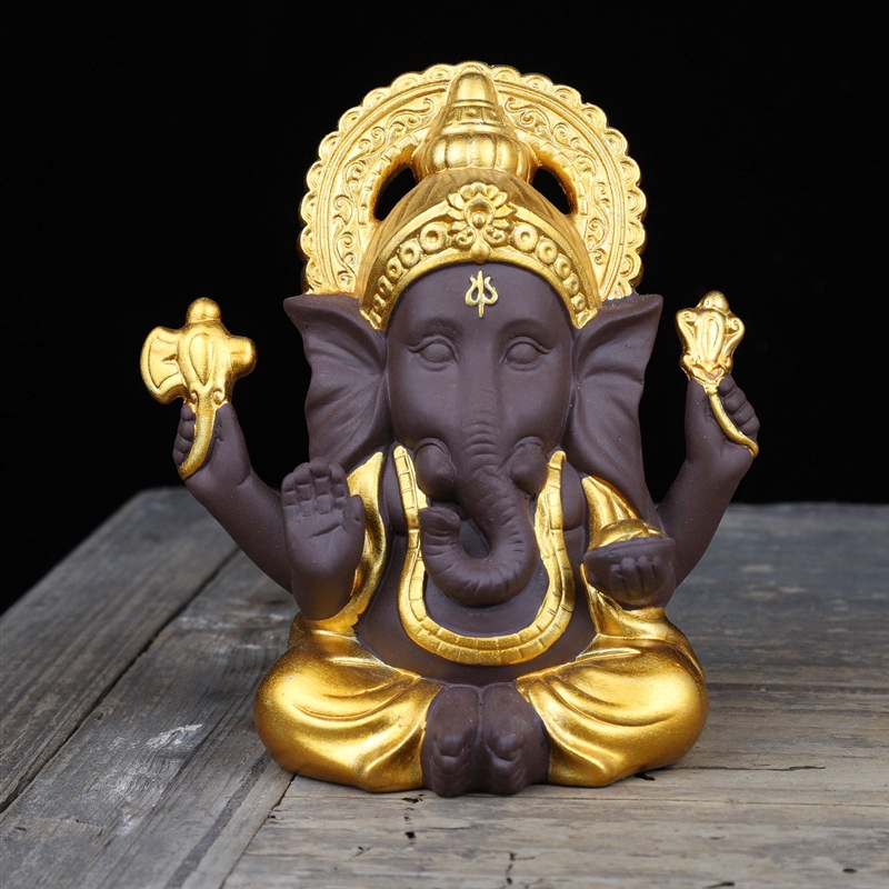 Ganesha Ceramic India Elephant God Buddha Statues Monk Purple Sand