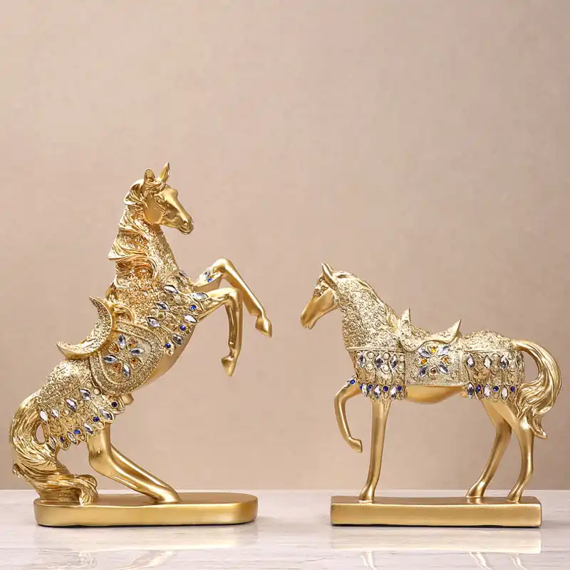Modern Handmade Gold Resin Horse Statue Home Decor Figurines