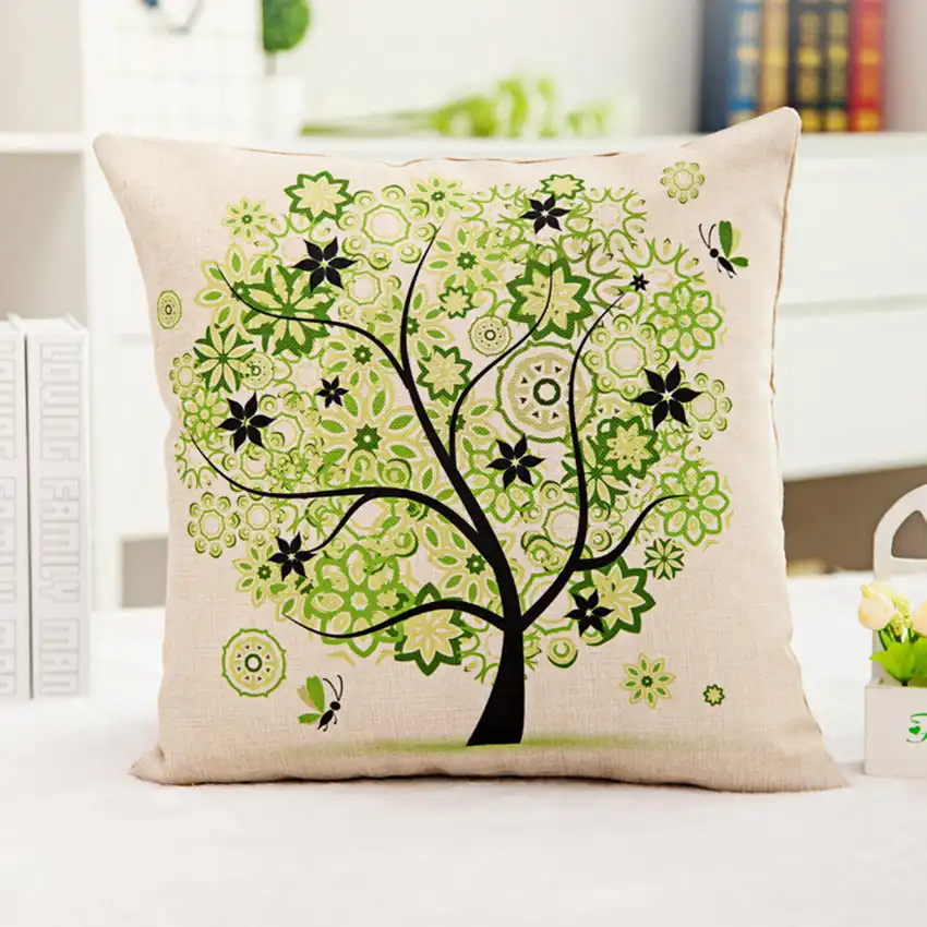 Hot Sale Printed Life Tree Cushion Synthesis Linen Home Decorative