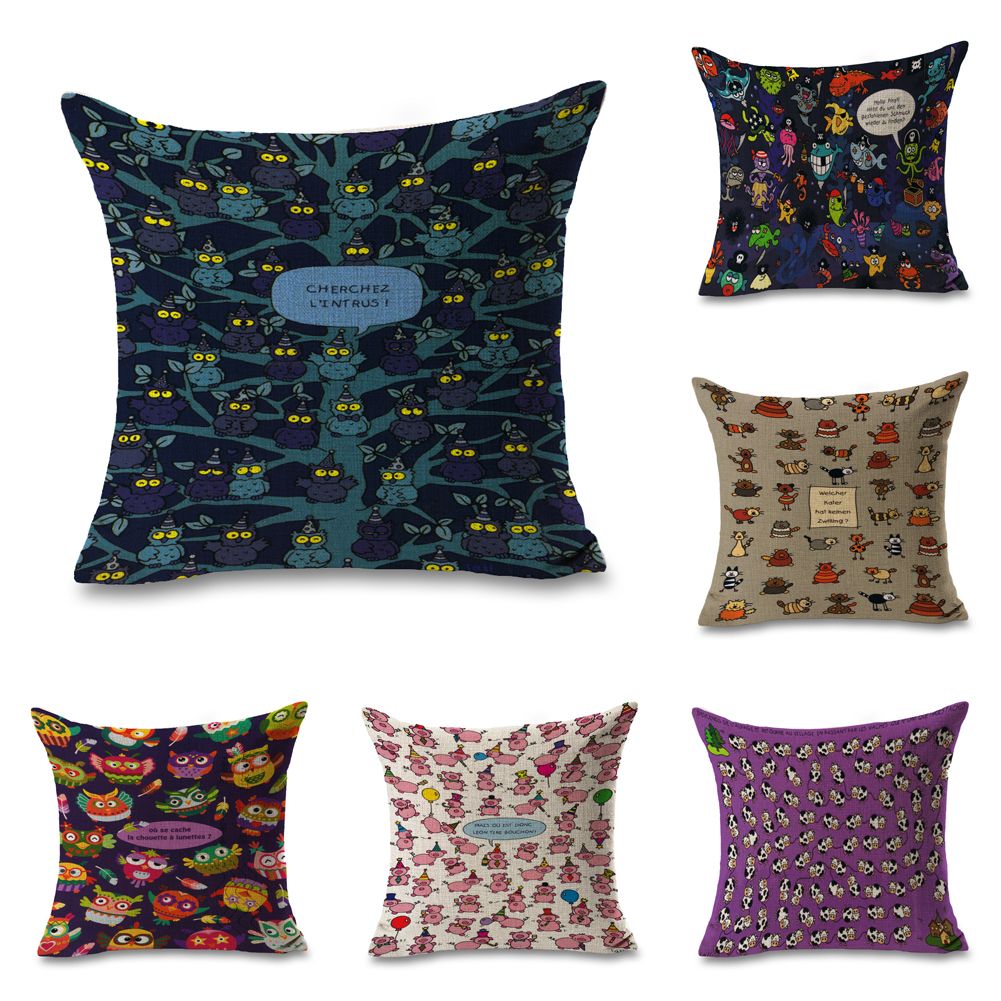 Owls Pigs Cartoon Throw Massager Pillow Case Decorative Pillows