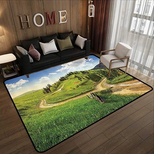 Amazon Com Kitchen Rugs Apartment Decor Hillside Meadow Cloudy