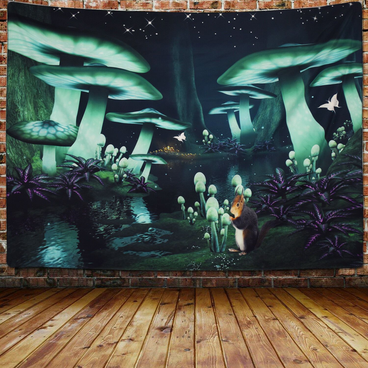 Psychedelic Mushroom Tapestry Wall Hanging Squirrel Bedspread Home