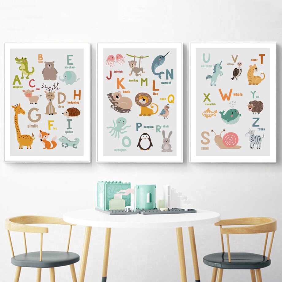 Canvas Pictures Home Decor Nordic Style Cartoon Animal Letters