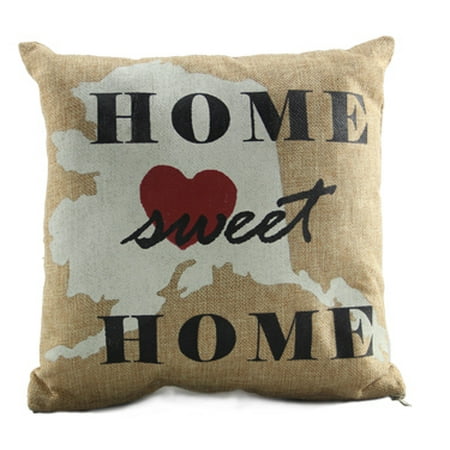 Square Burlap Vintage Design Home Sweet Home Accent Throw Pillow