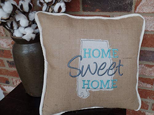 Alabama Home Sweet Home Burlap Look Custom Name Throw Pillow