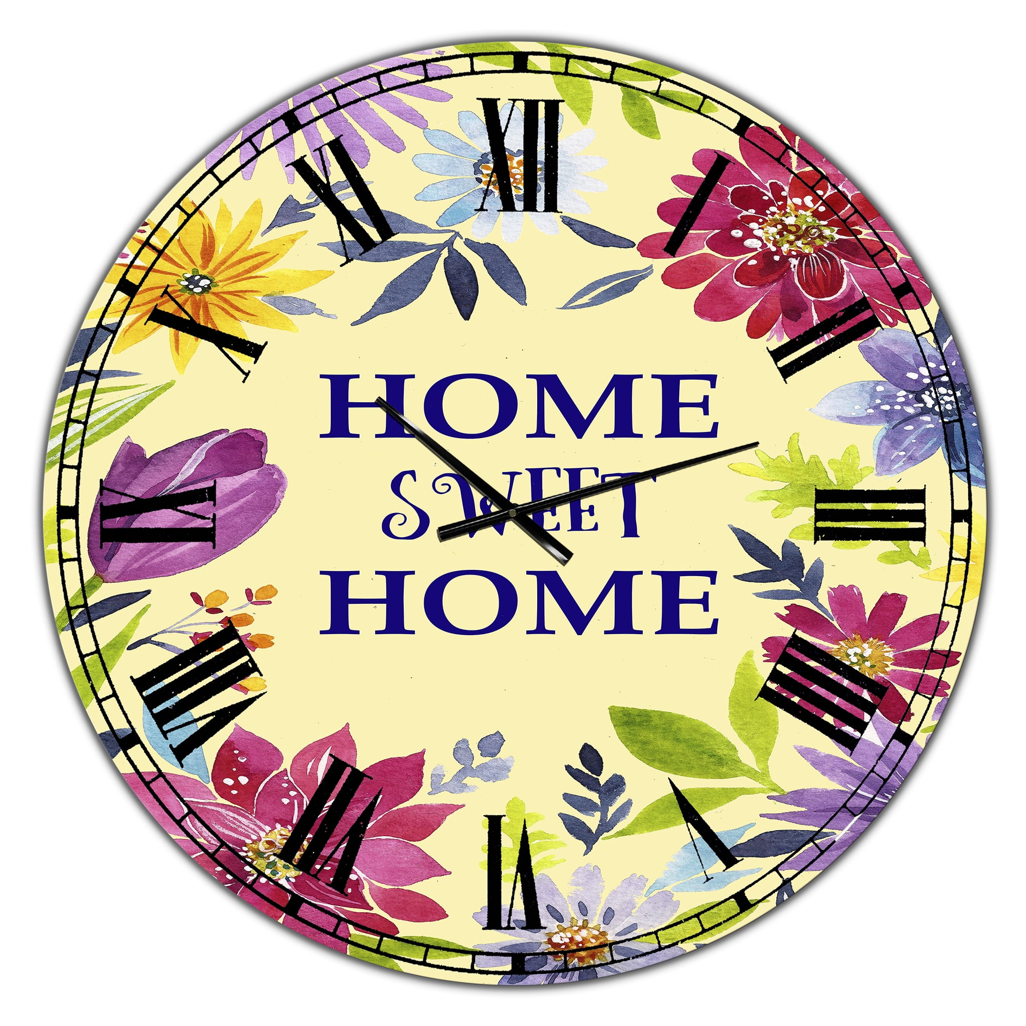 Designart Home Sweet Home Flower Wreath Large Wall Clock