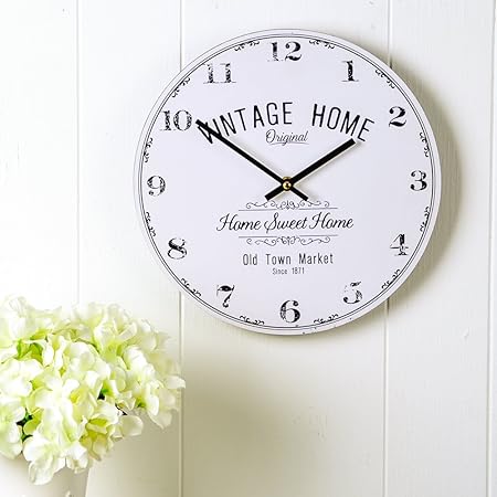White Vintage Home Home Sweet Home Wooden Wall Clock Perfect For