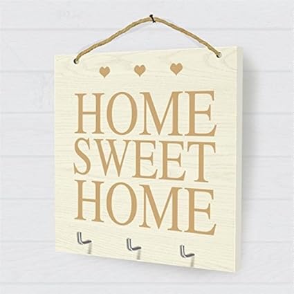 Cheerful Home Sweet Home Wooden Wall Plaque Key Hook Tlc