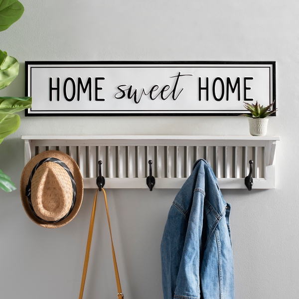 Rustic Home Sweet Home Wall Plaque With Hooks Stratton Home