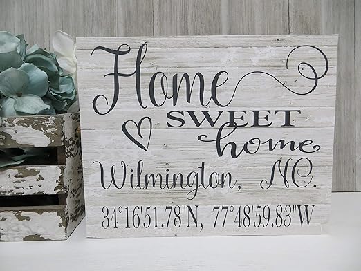 Free shipping on all us orders coordinates with home sweet home custom wood sign coordinates will be populated off of google maps sign available with vinyl on glass our glass and wood signs are printed with high quality vinyl writing encased in pine and finished with your saying of choice our frames are sanded hand.