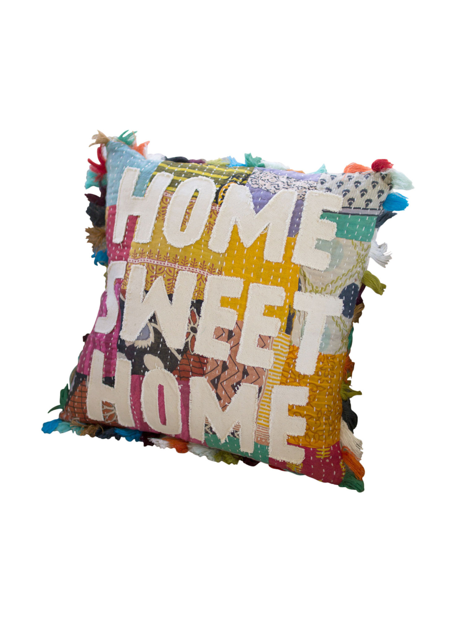 Hollyann Kalalou Kantha Patch Pillow Home Sweet Home Hollyann