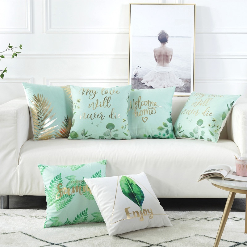 Pillowcase Home Decor Gold Green Flowers Cushion Cover Decorative