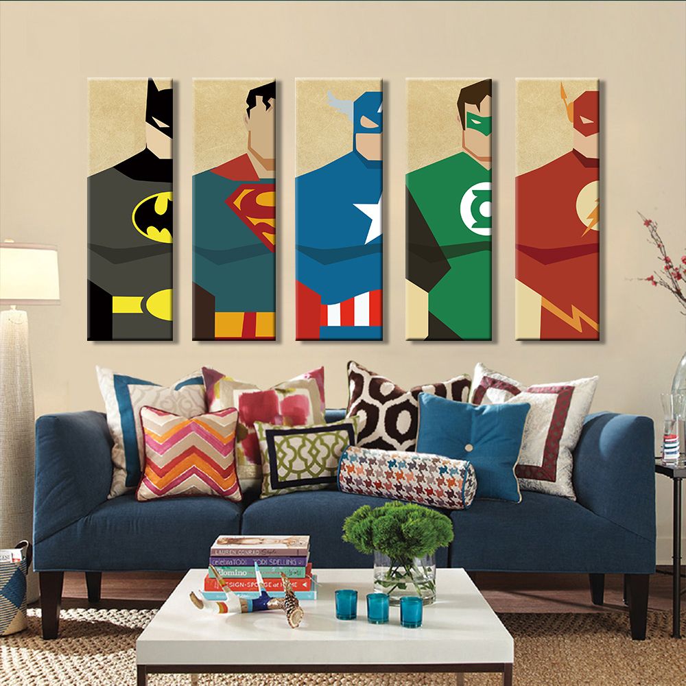 Superman Canvas Painting 5 Pieces Superhero Modern Home Wall Decor