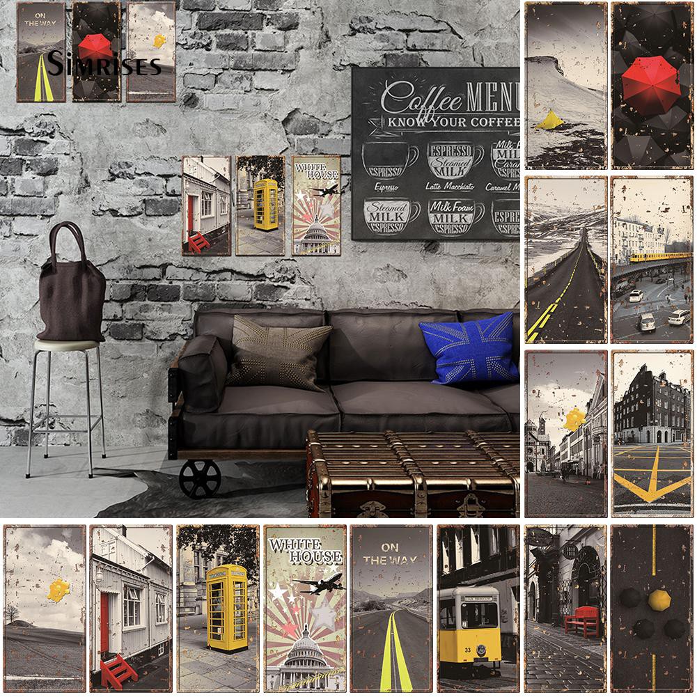 Street Building Umbrella 3d Poster Retro Decorative Sign Home Bar