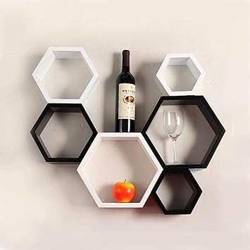 Decornation 6 Piece Mount Hexagon Shape Mdf Wall Shelf Black And