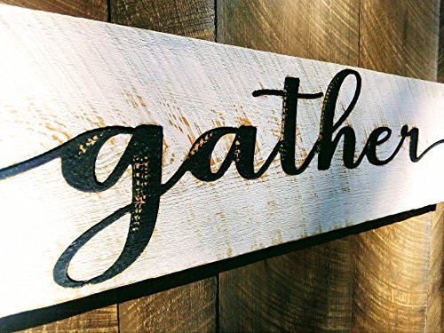 Gather Sign Horizontal Carved Rustic Farmhouse Wood Wall Art