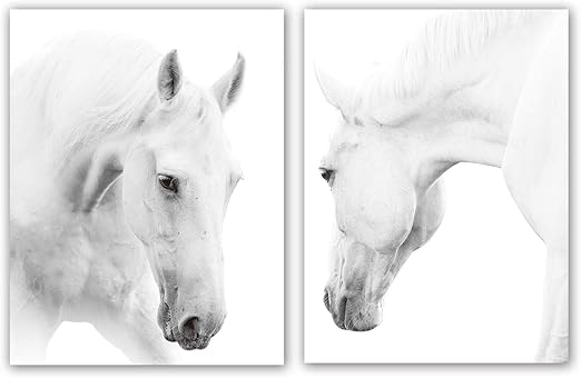 Amazon Com White Horse Art Print Set Of 2 12 X16 Wild Horse
