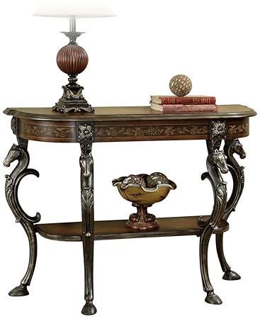 Horse console table. The berkhamstead wild horses console table from astoria grand comes with horse heads on the top shelf edge and horse hoof shaped legs giving it a unique and beautiful structure. I acquired it this summer when new neighbours were moving in and they tossed this table to the curb. Free shipping by amazon. Here is how she looked before the makeover.