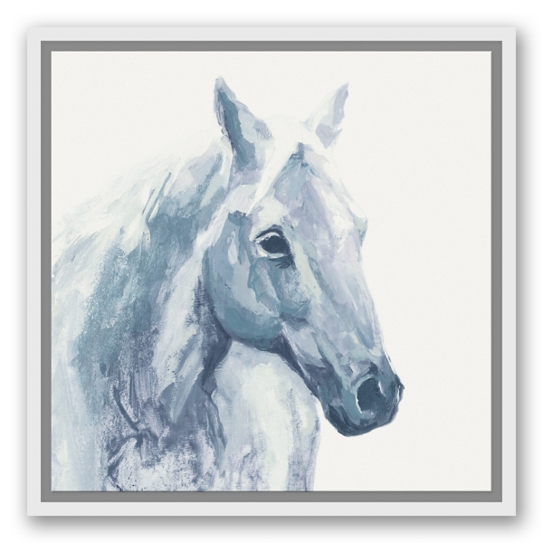 Litton Lane Blue Gray And White Horse Framed Canvas Wall Art