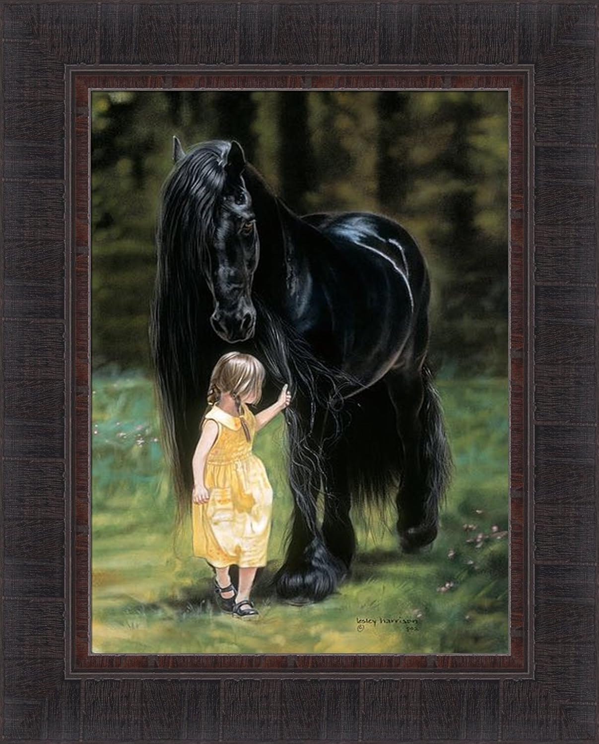 Amazon Com First Love By Lesley Harrison 17x21 Girl Hugging Horse