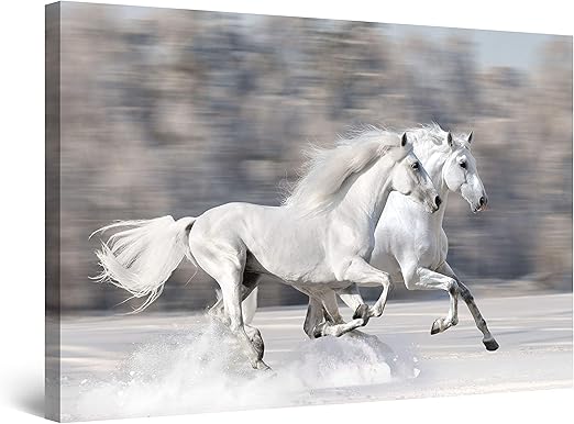 Stunning Galloping White Horses Canvas 46 Beautiful Horse Framed