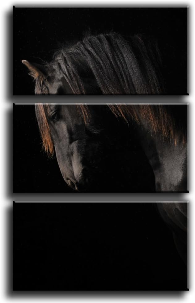 Black Stallion Horse Wall Art Canvas Print 3 Panel Split Triptych
