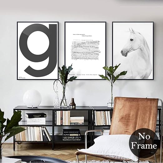 Triptych Modern Minimalist Black White Animal Horse Head Photo A4