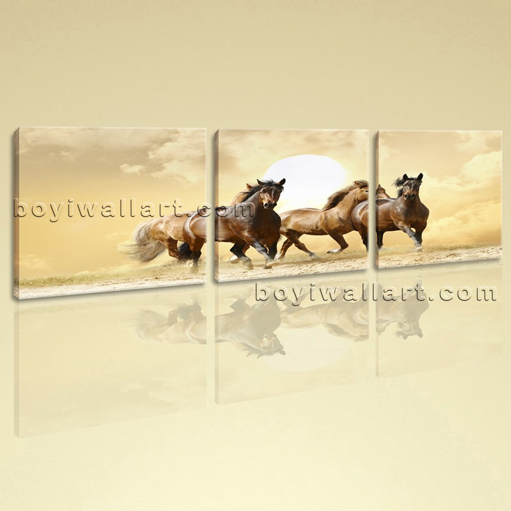 Large Wild Horses Horse Painting Canvas Art Living Room Triptych
